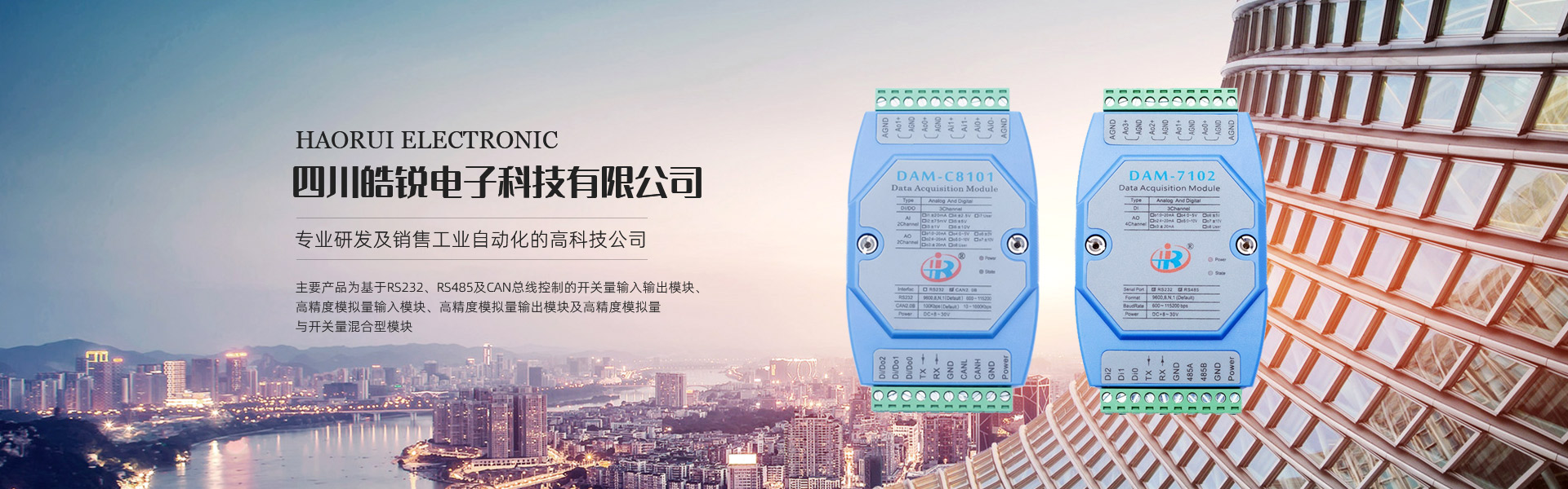四川皓锐电子科技有限公司是一家专业研发及销售工业自动化的高科技公司;主要产品为基于RS232、RS485及CAN总线控制的开关量输入输出模块、高精度模拟量输入模块、高精度模拟量输出模块及高精度模拟量与开关量混合型模块。
